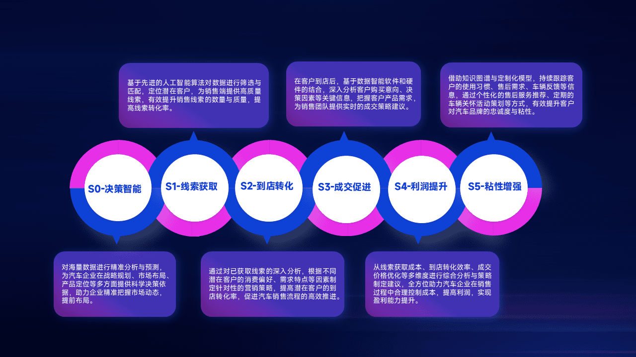 通过拓宽潜在客户来源、、、、优化线索分配并提高到店转化率,,,以增强销售效率。。。。同时,,利用线索数据不断优化分析模型,,,有效提升转化率,,,扩大营销影响力。。。